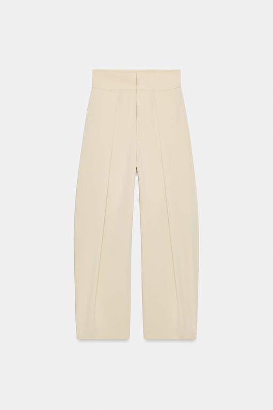 ZARA БРЮКИ BALLOON С ЗАЩИПАМИ, БЕЖЕВЫЙ