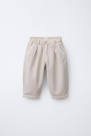 ZARA БРЮКИ BALLOON С ЗАЩИПАМИ, ЭКРЮ