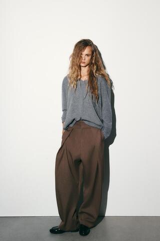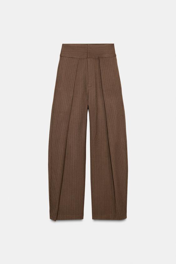 ZARA БРЮКИ BALLOON С ЗАЩИПАМИ, РЫЖЕВАТО-КОРИЧНЕВЫЙ