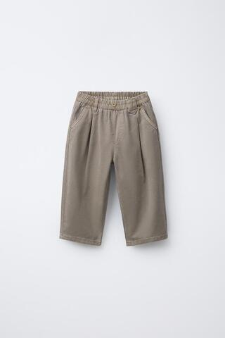 ZARA БРЮКИ BALLOON С ЗАЩИПАМИ, СЕРОВАТО-КОРИЧНЕВЫЙ