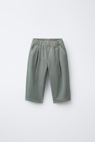 ZARA БРЮКИ BALLOON С ЗАЩИПАМИ, УТИНО-СИНИЙ