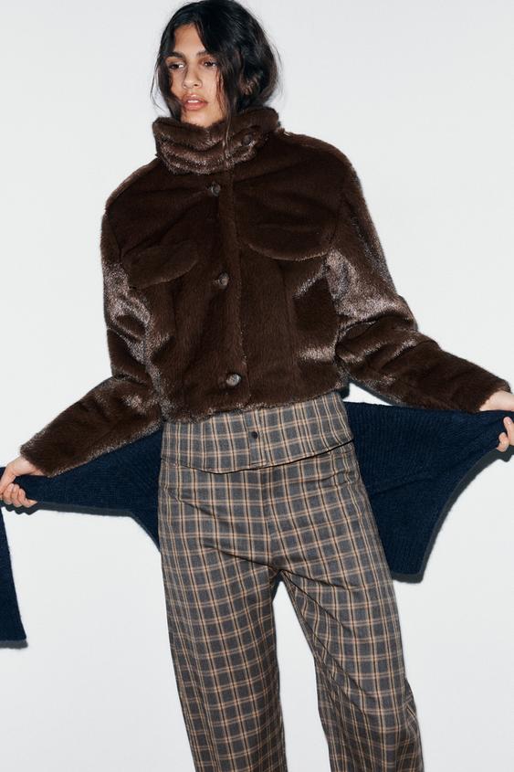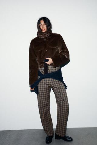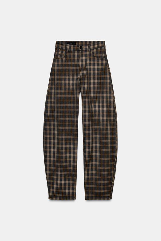 ZARA БРЮКИ BALLOON В КЛЕТКУ, СЕРО-КОРИЧНЕВЫЙ