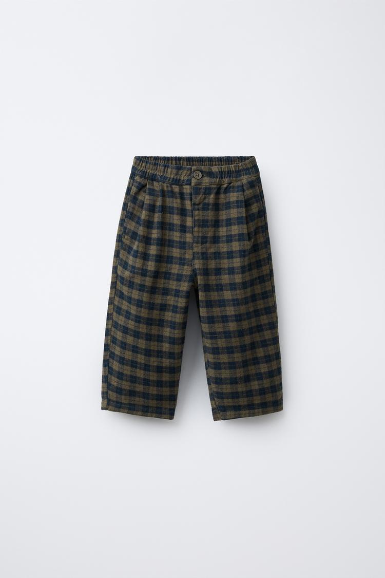 ZARA БРЮКИ BALLOON В КЛЕТКУ SOFT TOUCH, ЗЕЛЕНЫЙ