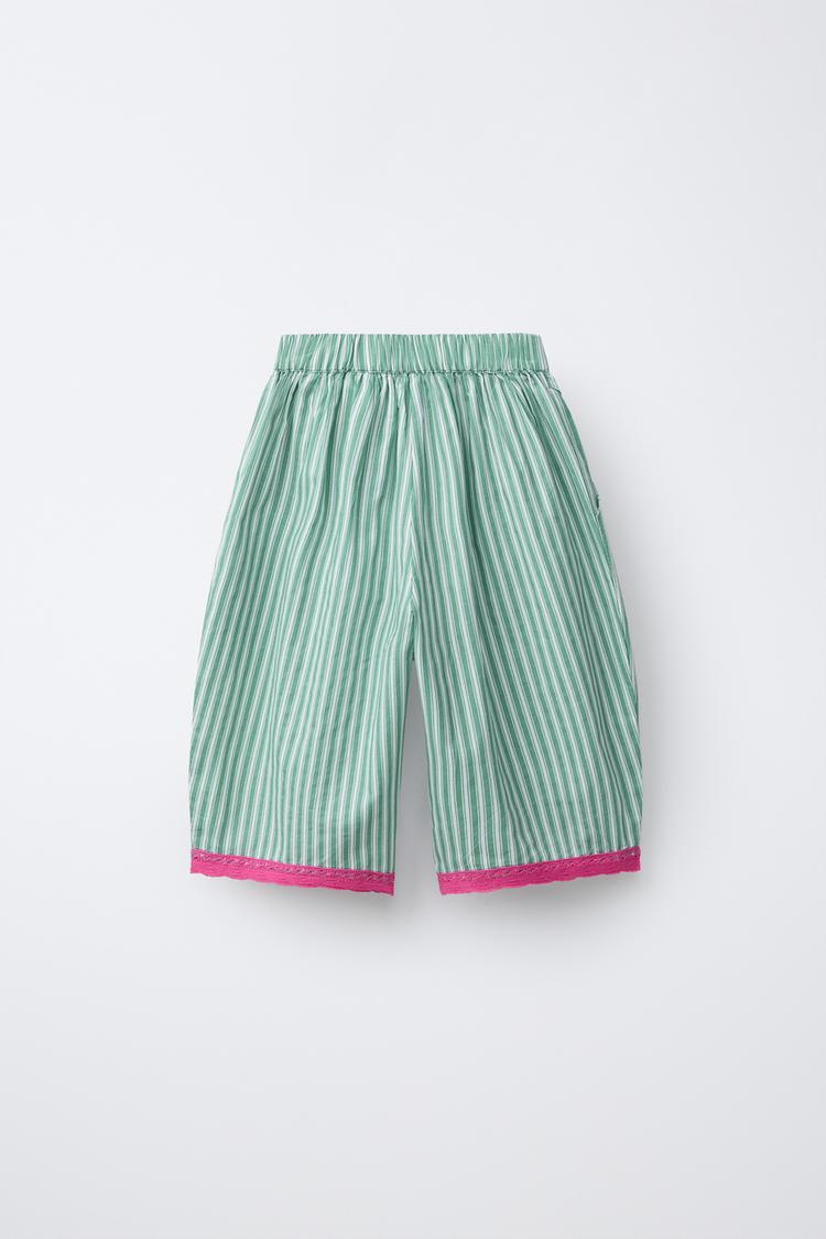 ZARA БРЮКИ BALLOON В ПОЛОСКУ, ЗЕЛЕНЫЙ