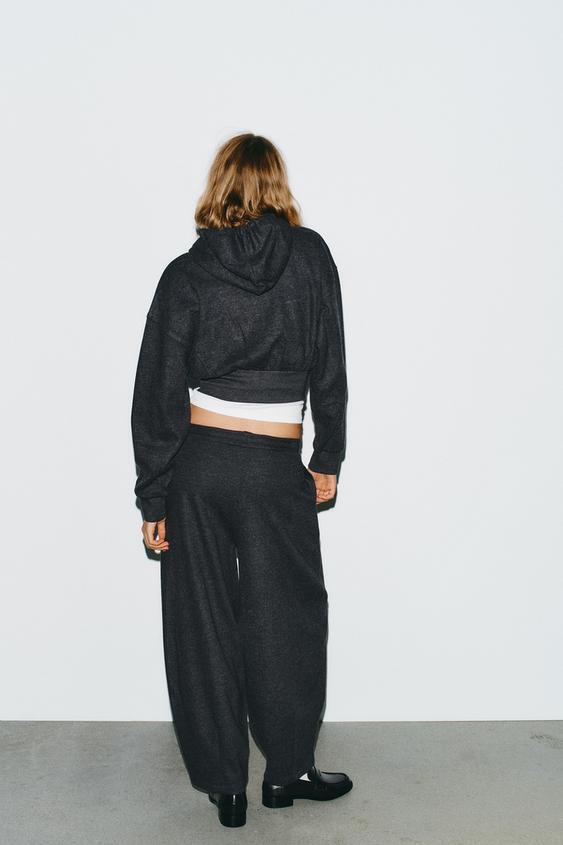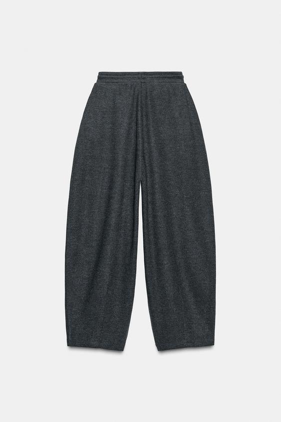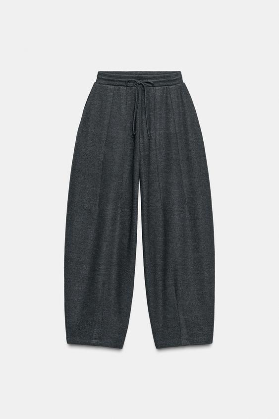 ZARA БРЮКИ BALLOON В РУБЧИК, ТЕМНО-СЕРЫЙ