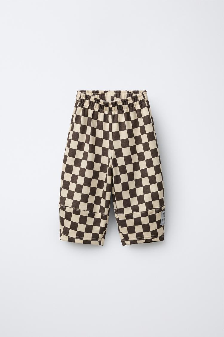 ZARA БРЮКИ BALLOON В ШАХМАТНУЮ КЛЕТКУ, КОРИЧНЕВЫЙ