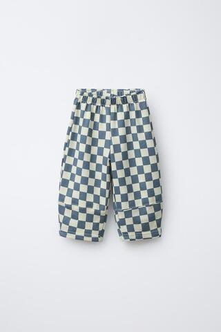 ZARA БРЮКИ BALLOON В ШАХМАТНУЮ КЛЕТКУ, СИНИЙ