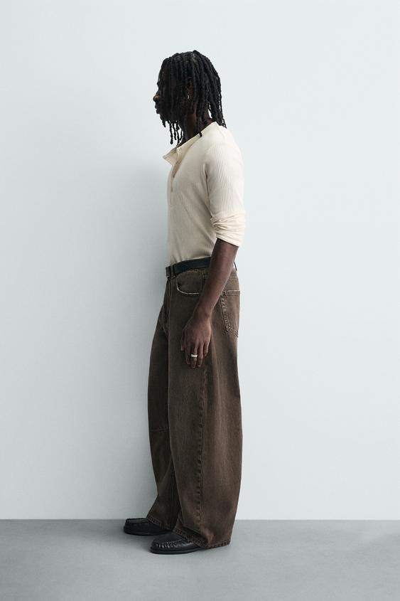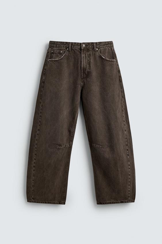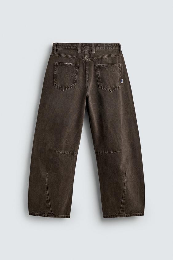 ZARA БРЮКИ BARREL FIT С ЭФФЕКТОМ ПОТЕРТОСТИ, КОРИЧНЕВЫЙ