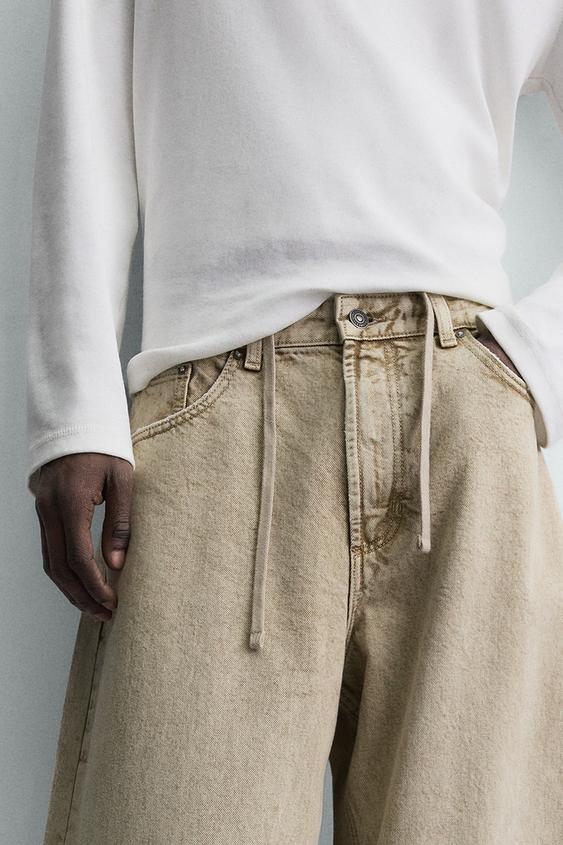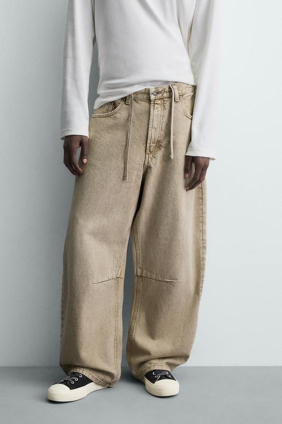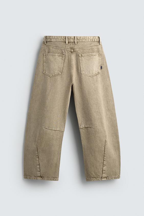 ZARA БРЮКИ BARREL FIT С ЭФФЕКТОМ ПОТЕРТОСТИ, ПЕСОЧНЫЙ