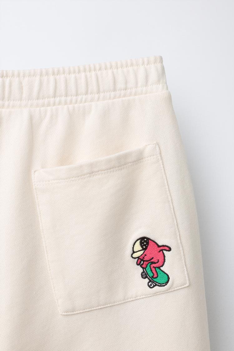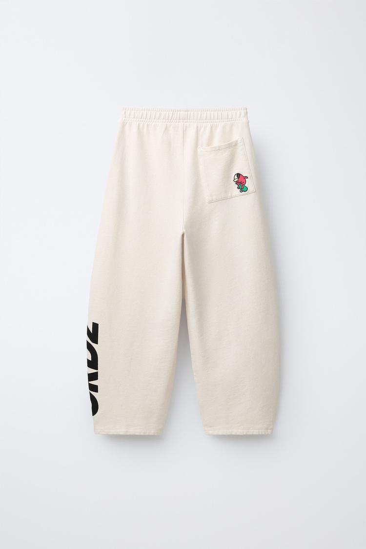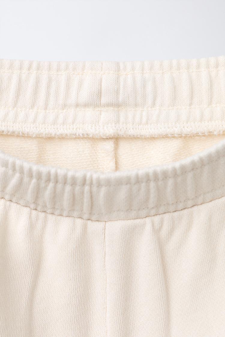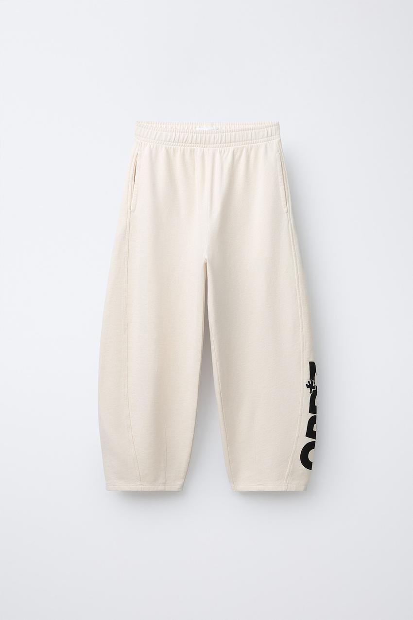 ZARA БРЮКИ BARREL ИЗ ФУТЕРА С ЛОГОТИПОМ, ЖЕЛТОВАТО-БЕЛЫЙ