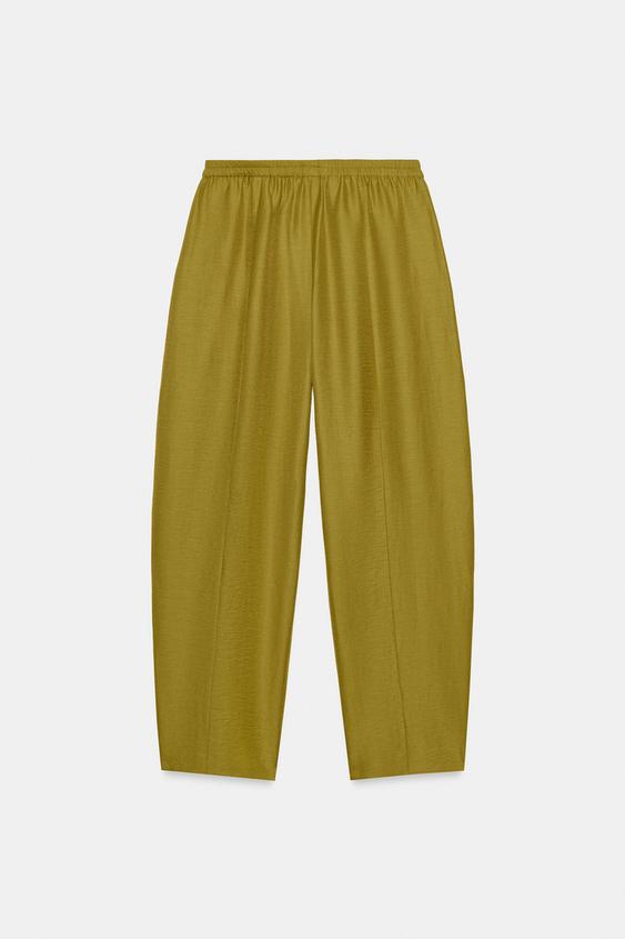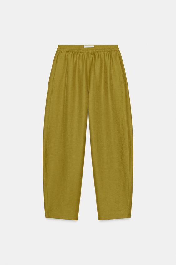 ZARA БРЮКИ BARREL ИЗ ЛЬНА, ЦВЕТ ОЛИВКОВОГО МАСЛА
