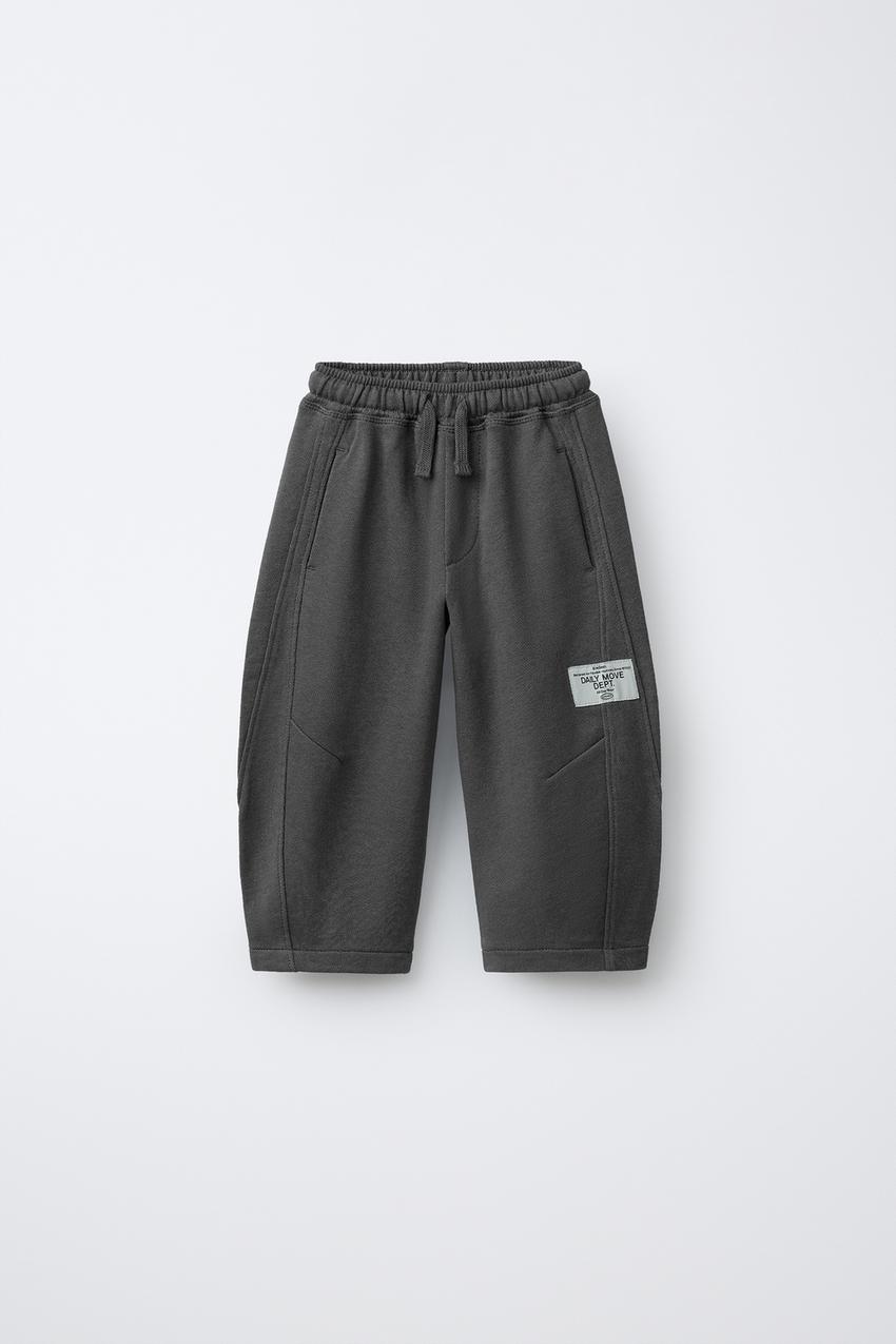 ZARA БРЮКИ BARREL ИЗ МЯГКОЙ ТКАНИ С НАШИВКОЙ, АНТРАЦИТОВО-СЕРЫЙ