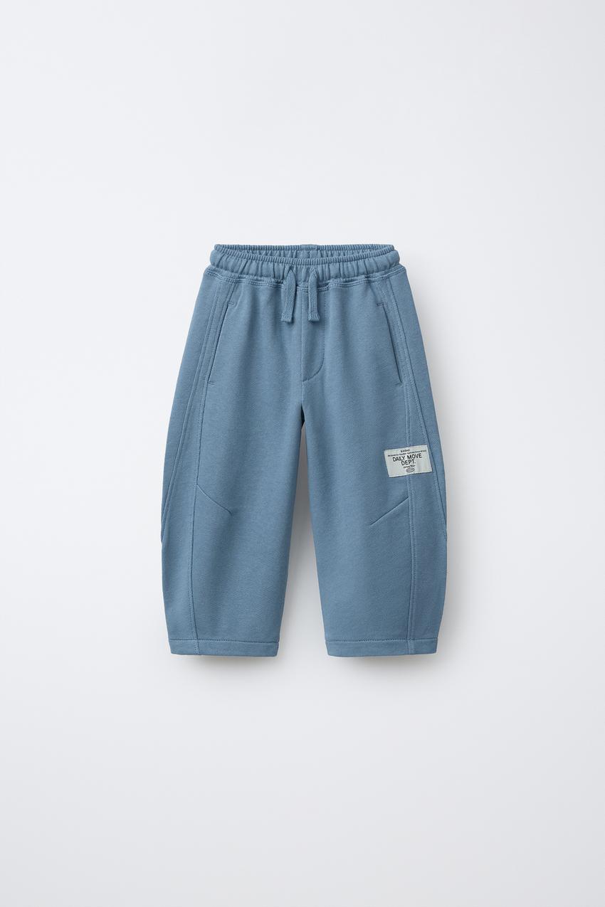 ZARA БРЮКИ BARREL ИЗ МЯГКОЙ ТКАНИ С НАШИВКОЙ, ГОЛУБОЙ