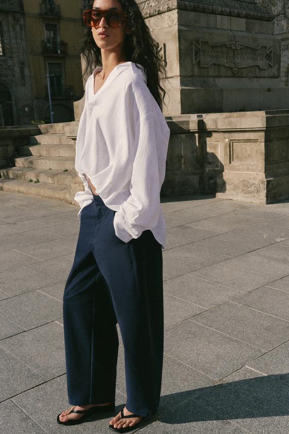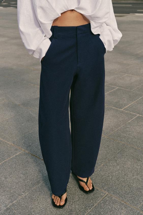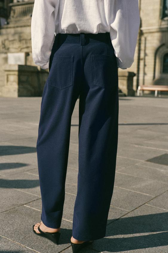 ZARA БРЮКИ BARREL, МОРСКОЙ СИНИЙ