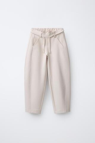 ZARA БРЮКИ BARREL НА ШНУРКЕ, ЭКРЮ