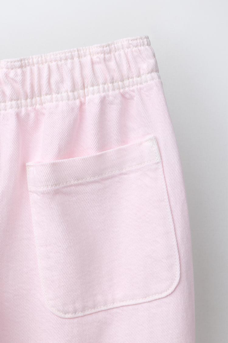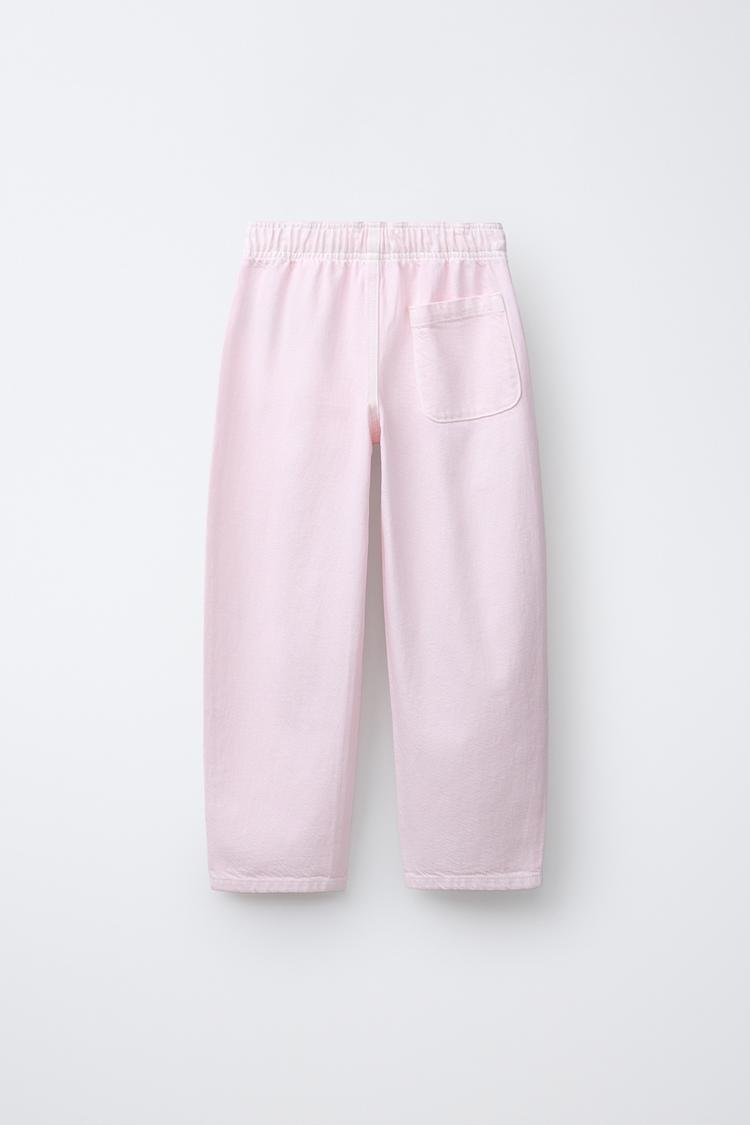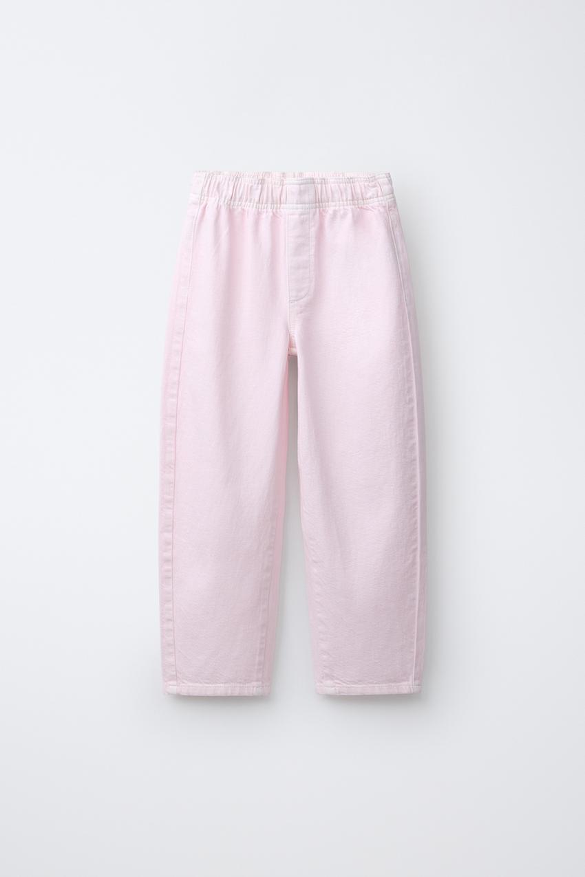 ZARA БРЮКИ BARREL С ЭЛАСТИЧНЫМ ПОЯСОМ, БЕЛЫЙ/РОЗОВЫЙ