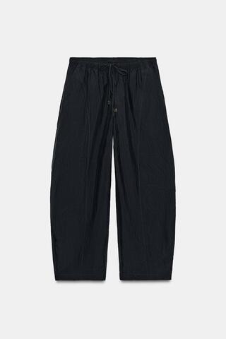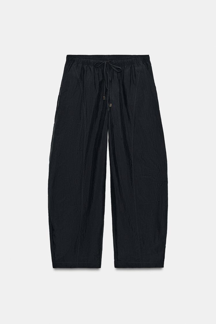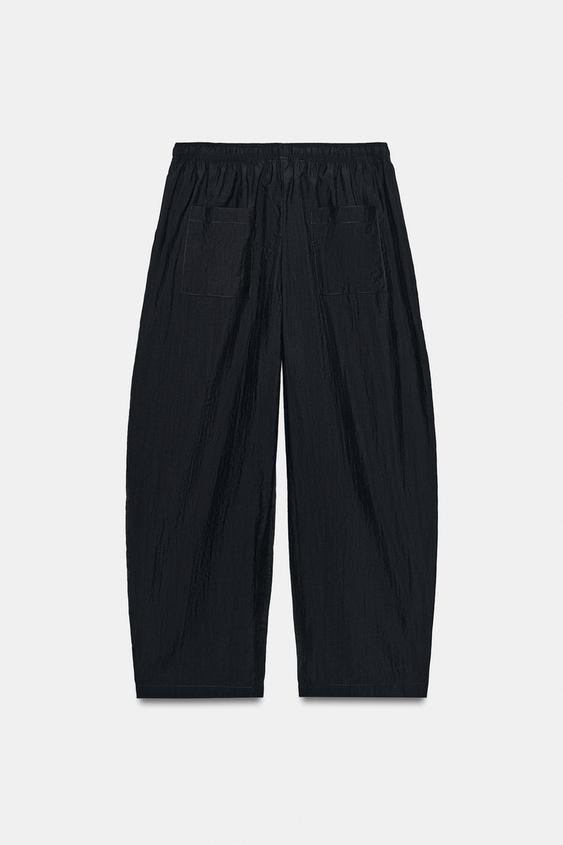 ZARA БРЮКИ BARREL С ЭЛАСТИЧНЫМ ПОЯСОМ, ТЕМНО-СЕРЫЙ
