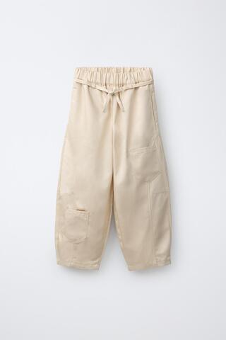 ZARA БРЮКИ BARREL С КАРМАНАМИ, СВЕТЛО-БЕЖЕВЫЙ