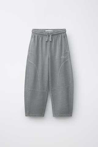 ZARA БРЮКИ BARREL С РАЗРЕЗАМИ, СЕРОВАТЫЙ