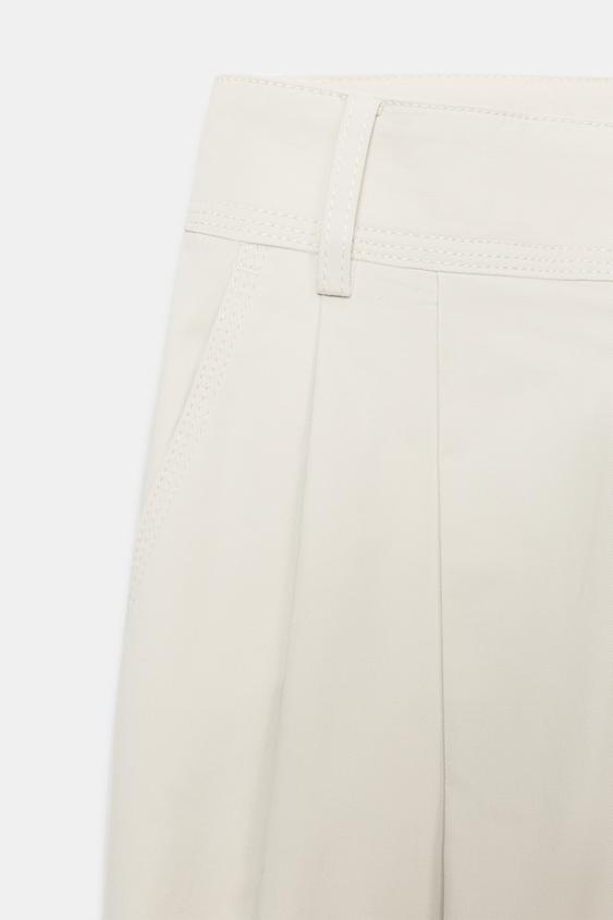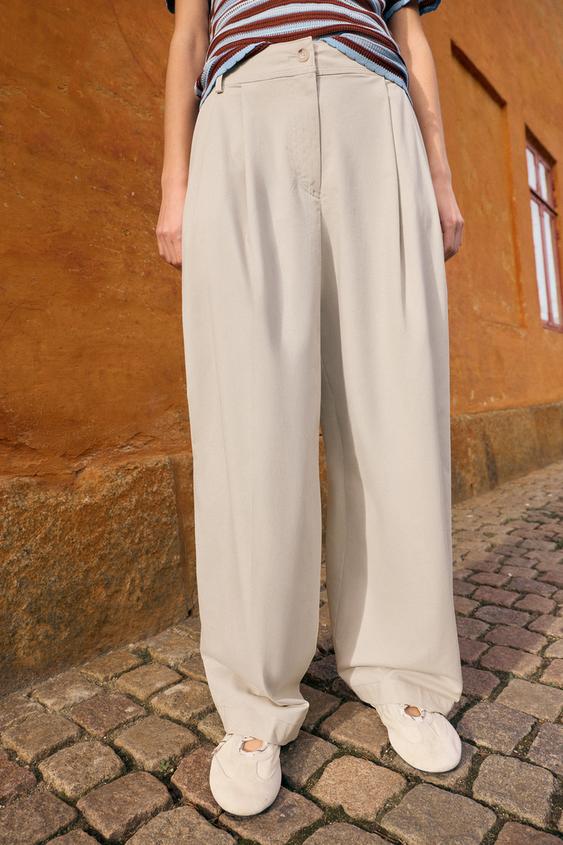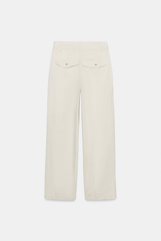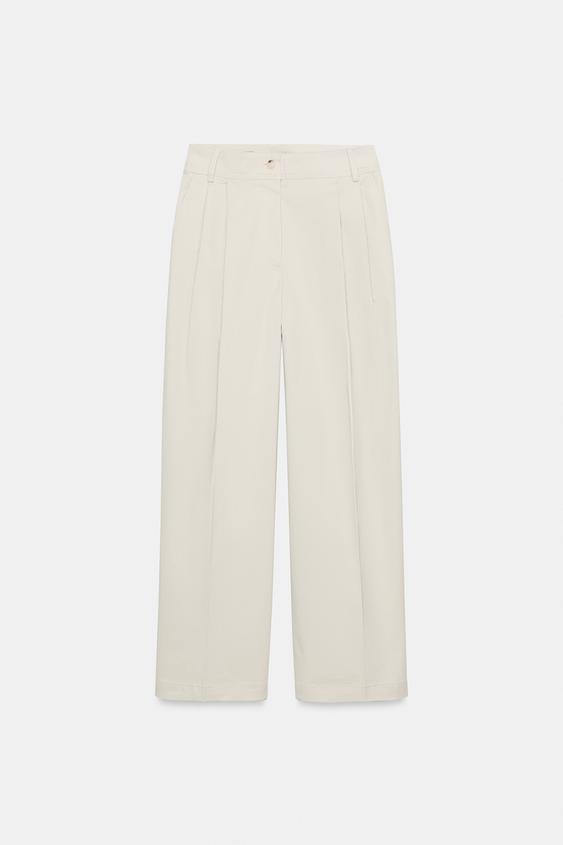 ZARA БРЮКИ BARREL С ЗАЩИПАМИ, ЭКРЮ