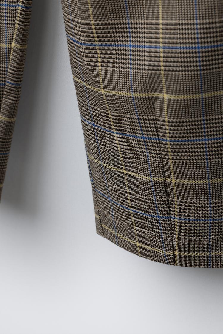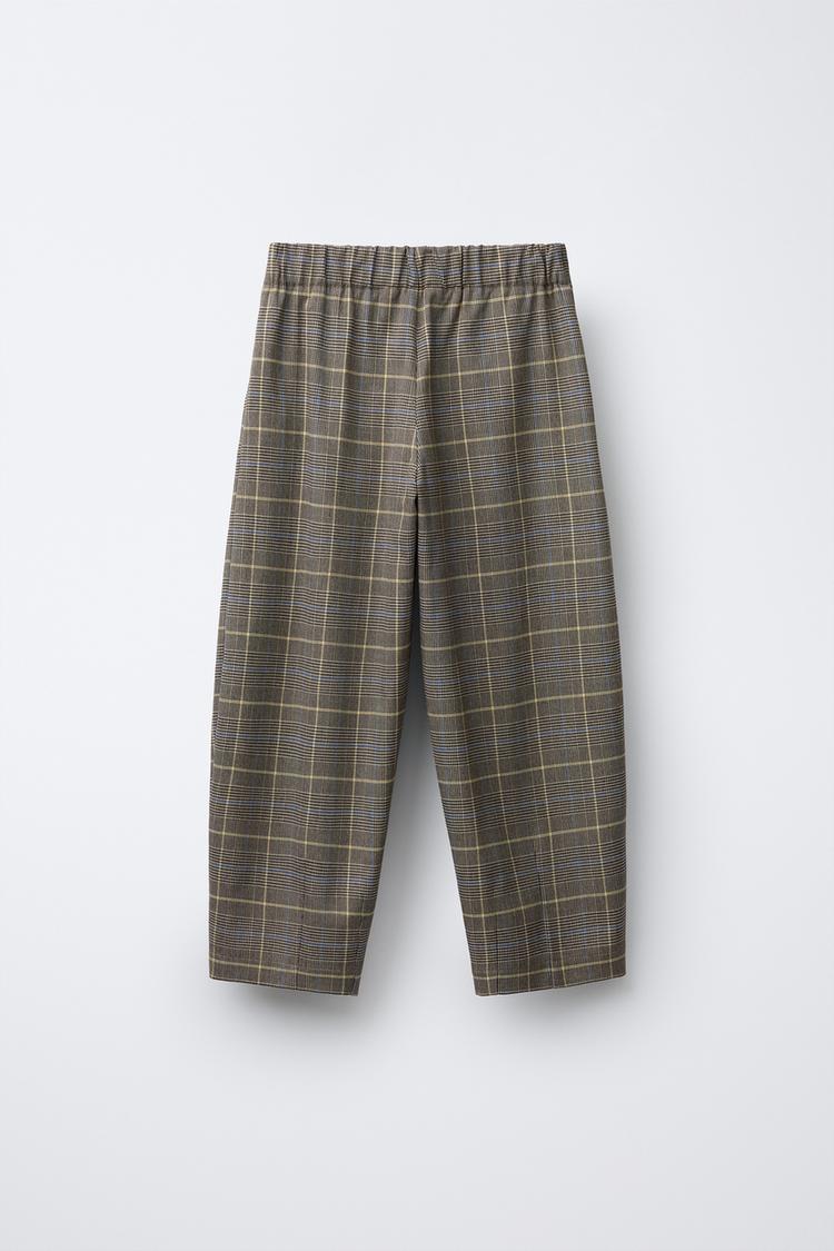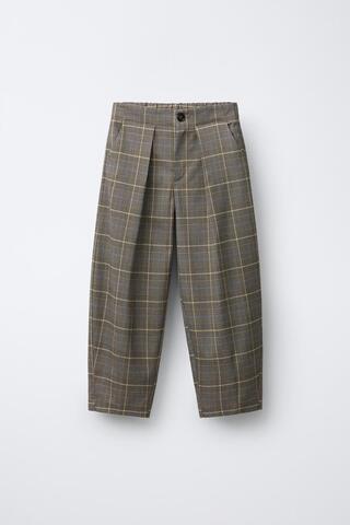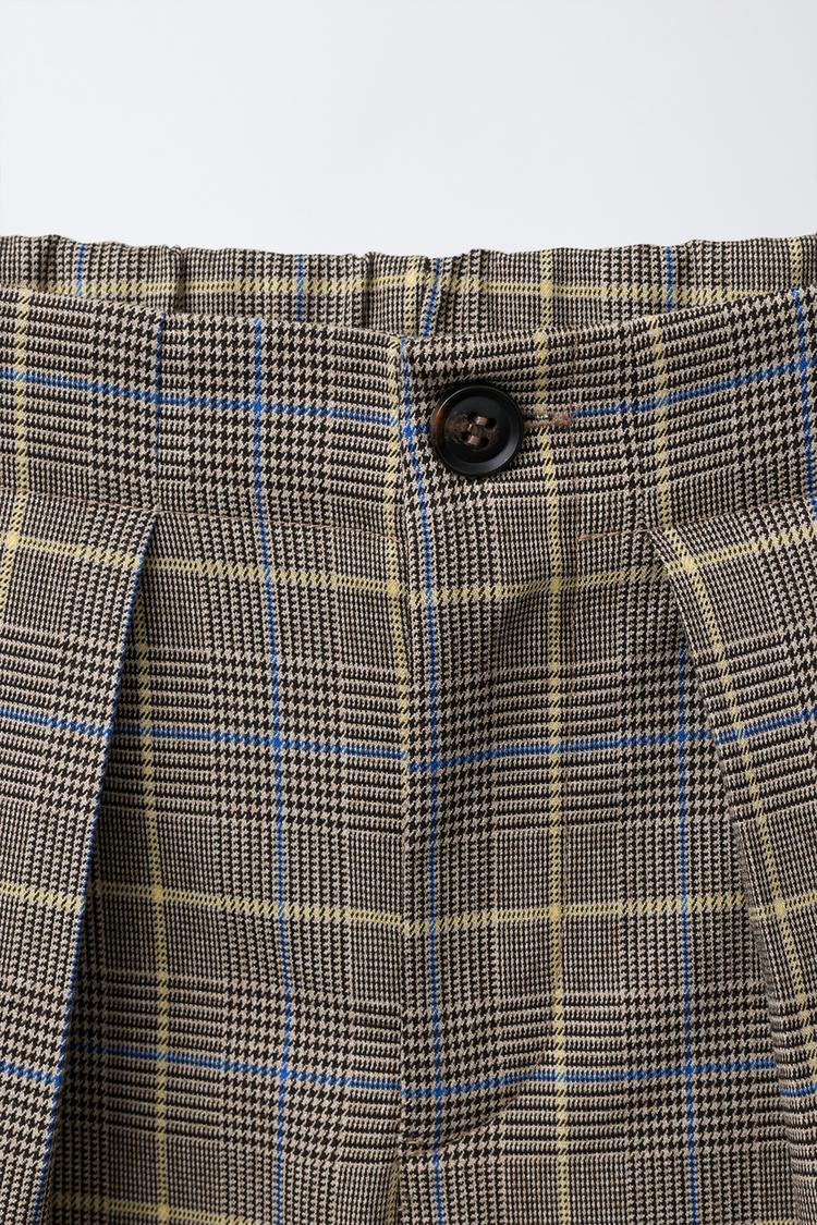 ZARA БРЮКИ BARREL В КЛЕТКУ С ЗАЩИПАМИ, РЫЖЕВАТО-КОРИЧНЕВЫЙ