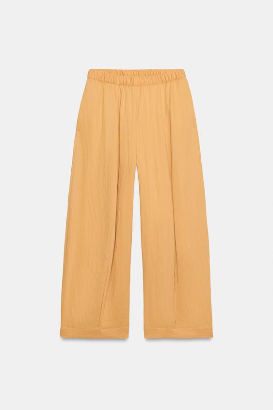 Брюки из смесового лиоцелла. Средняя посадка. Эластичный пояс с внутренней регулируемой кулиской. Боковые карманы в швах.