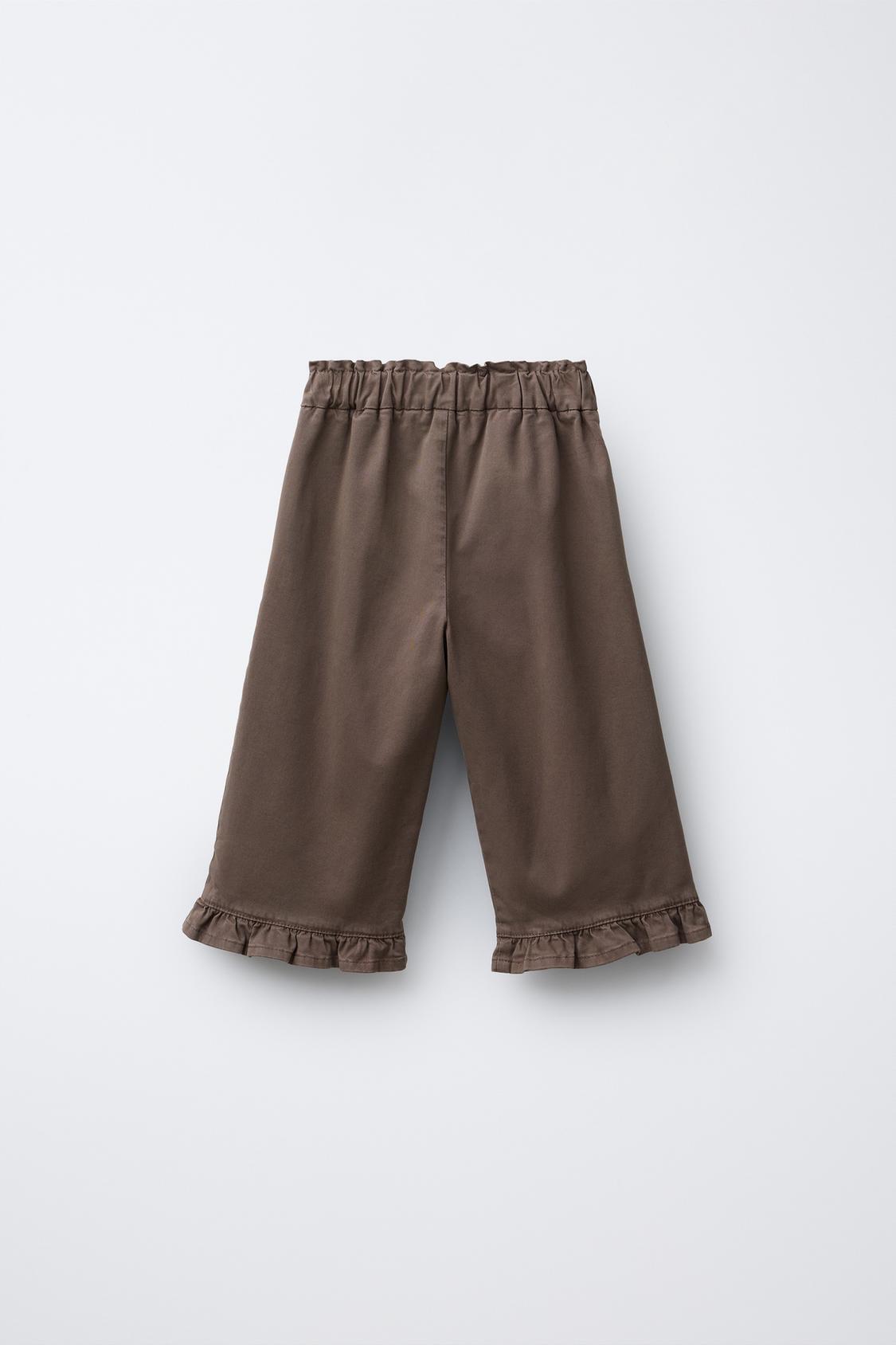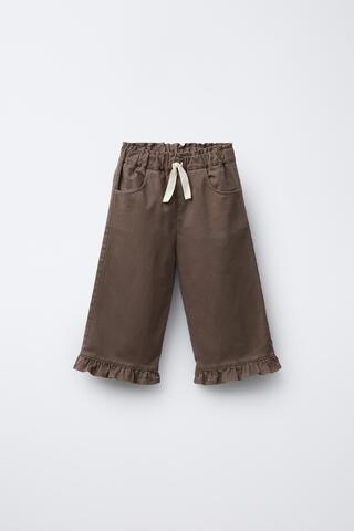 ZARA БРЮКИ БЭГГИ С ВОЛАНАМИ, КОРИЧНЕВЫЙ