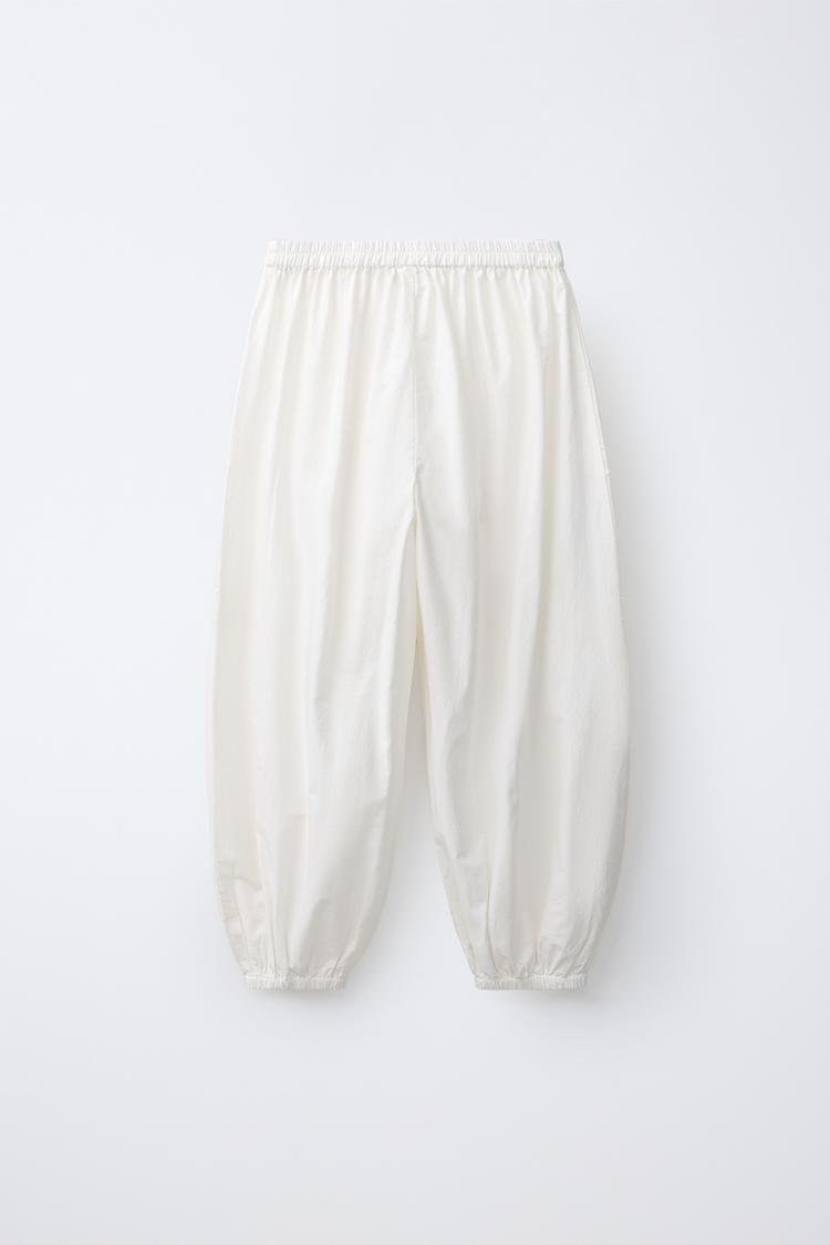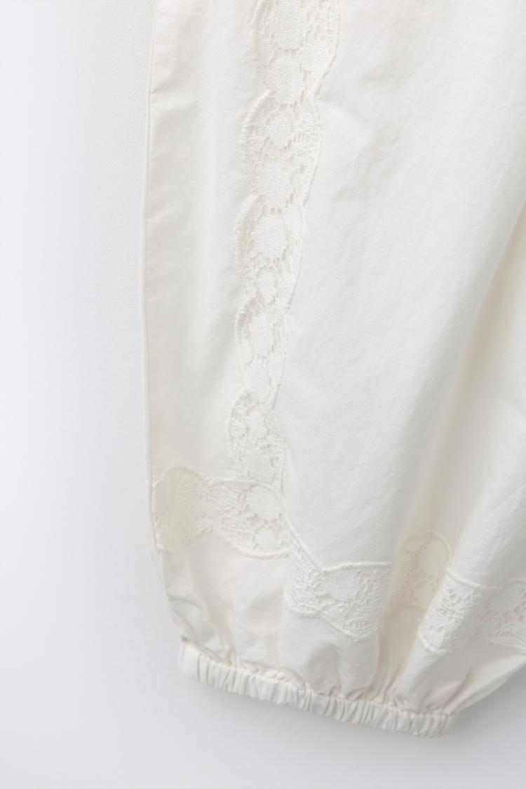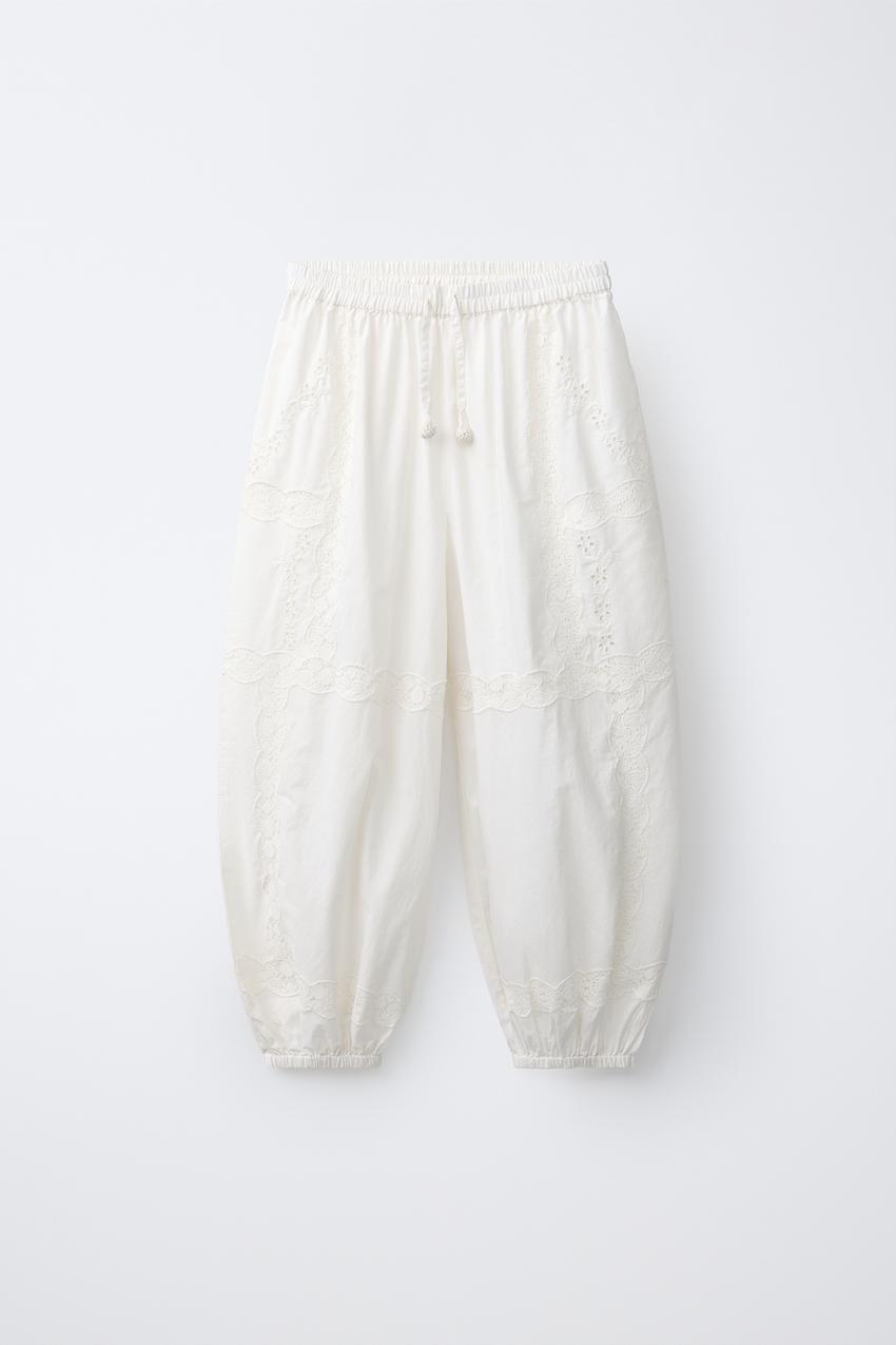 ZARA БРЮКИ-БОМБЕРЫ С ВЫШИВКОЙ LACE, ЖЕЛТОВАТО-БЕЛЫЙ