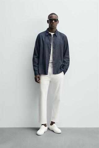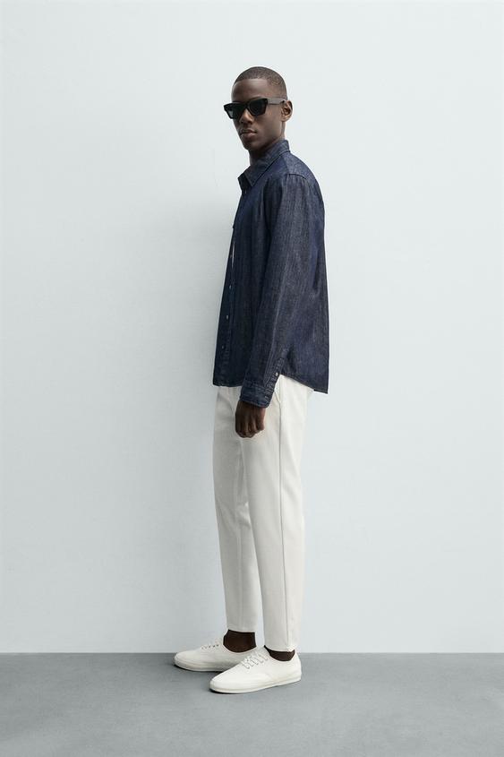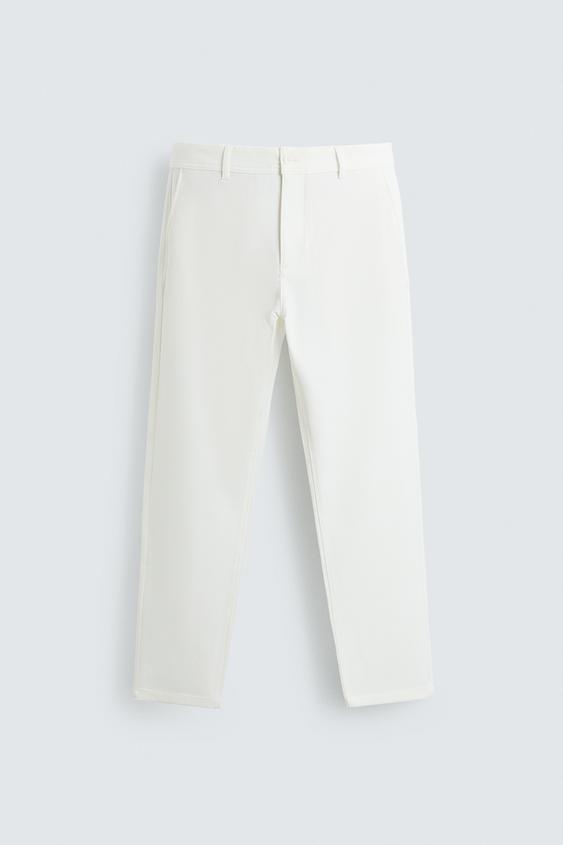 ZARA БРЮКИ ЧИНОС ИЗ КОМФОРТНОЙ РЕЛЬЕФНОЙ ТКАНИ, БЕЛЫЙ