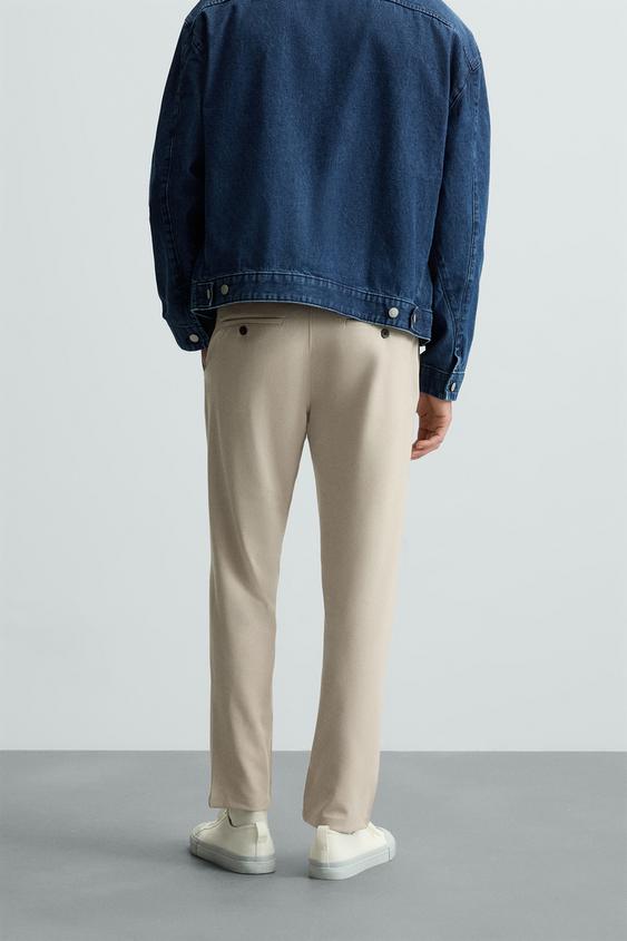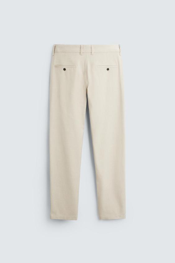 ZARA БРЮКИ ЧИНОС ИЗ КОМФОРТНОЙ РЕЛЬЕФНОЙ ТКАНИ, БЕЖЕВЫЙ