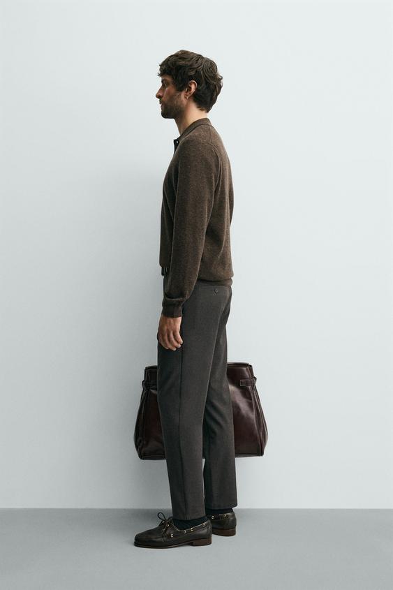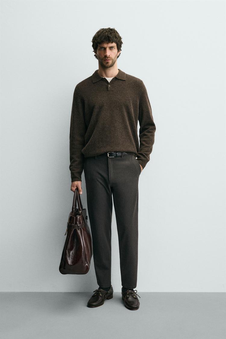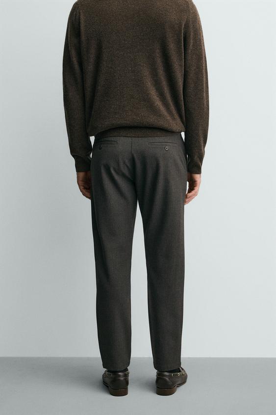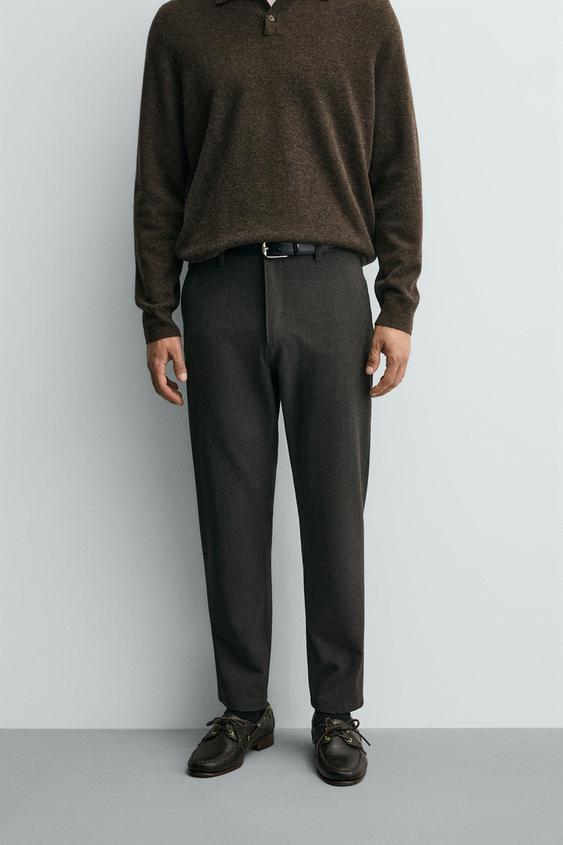 ZARA БРЮКИ ЧИНОС ИЗ КОМФОРТНОЙ РЕЛЬЕФНОЙ ТКАНИ, КОРИЧНЕВЫЙ МЕЛАНЖ