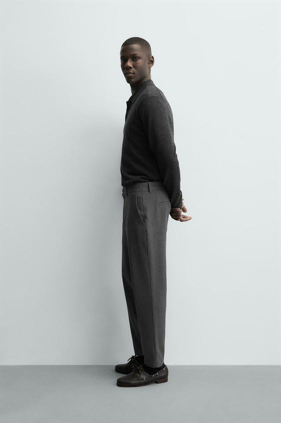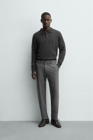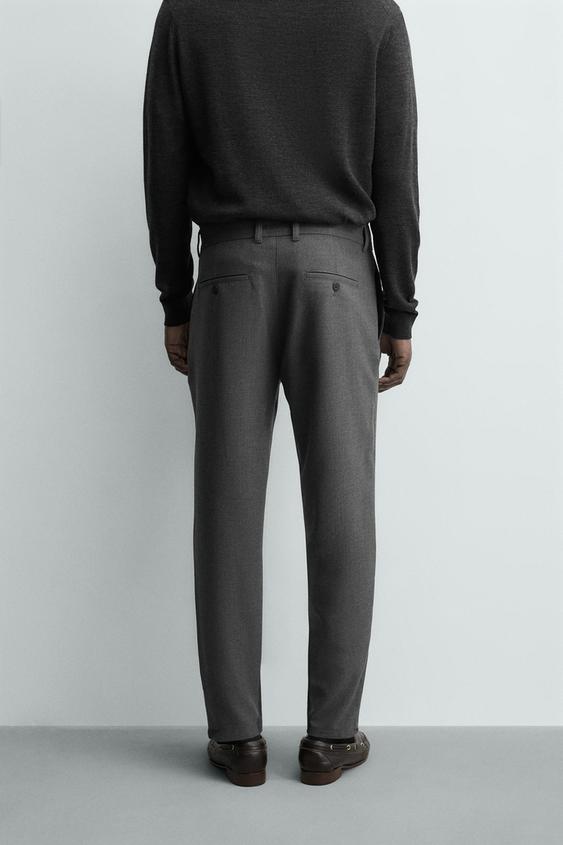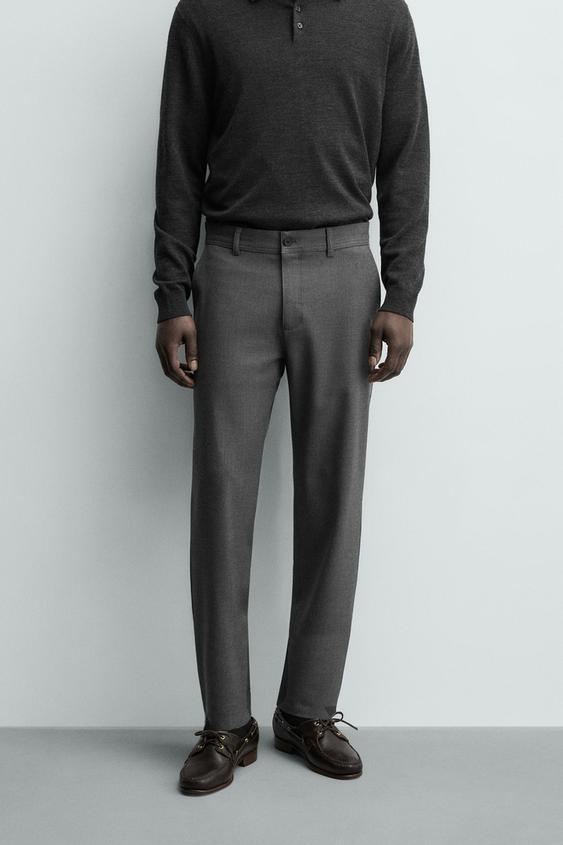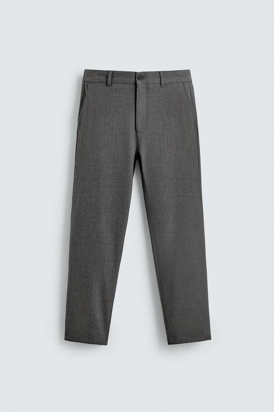 ZARA БРЮКИ ЧИНОС ИЗ КОМФОРТНОЙ РЕЛЬЕФНОЙ ТКАНИ, НАТУРАЛЬНЫЙ СЕРЫЙ