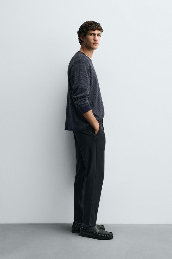 ZARA БРЮКИ ЧИНОС ИЗ КОМФОРТНОЙ РЕЛЬЕФНОЙ ТКАНИ, НЕФТЯНОЙ