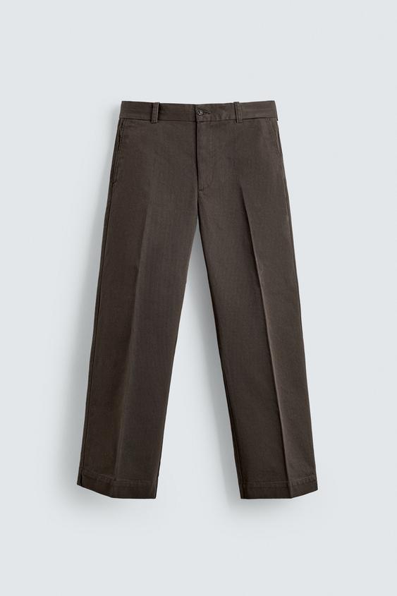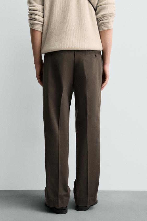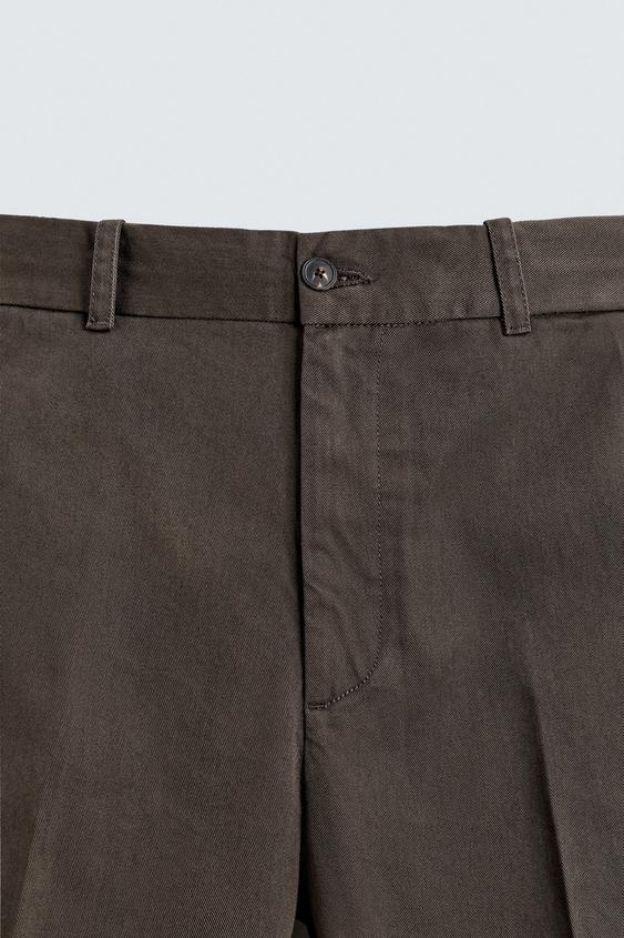 ZARA БРЮКИ ЧИНОС ИЗ ТВИЛА ORIGINS, КОРИЧНЕВЫЙ