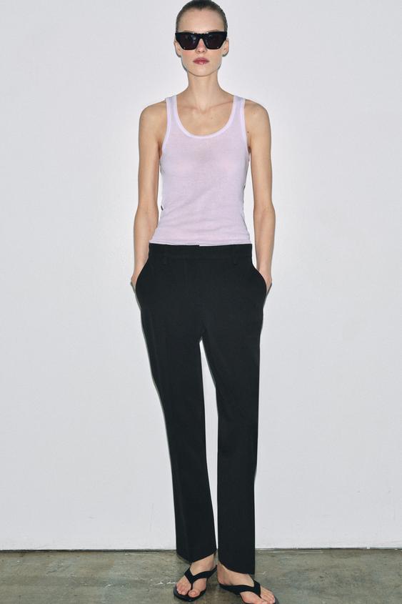 ZARA БРЮКИ ЧИНОС ПРЯМОГО КРОЯ — ZW COLLECTION, ЧЕРНЫЙ