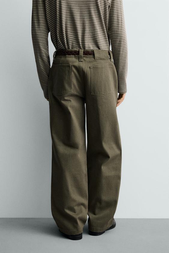 ZARA БРЮКИ ЧИНОС RELAXED FIT С ХЛЯСТИКАМИ, ХАКИ