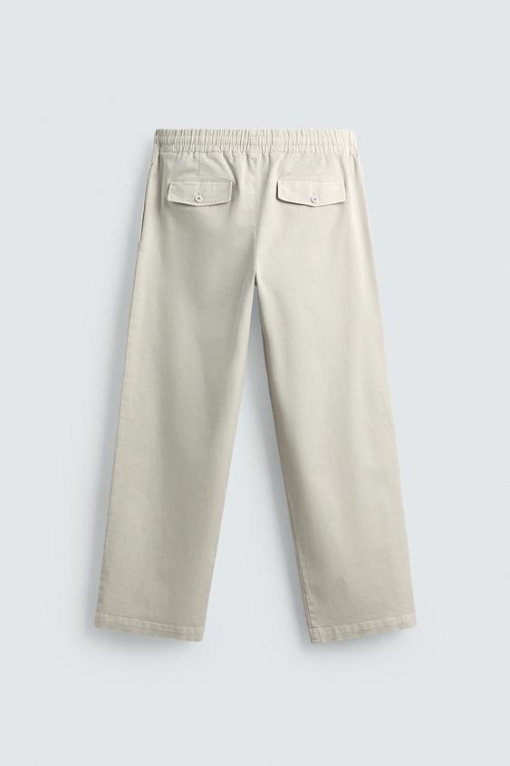 Брюки свободного кроя из эластичного хлопка. Эластичный пояс на регулируемом шнурке. Боковые карманы и задние карманы с клапанами.