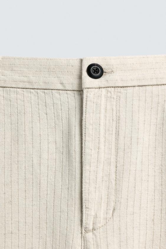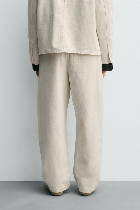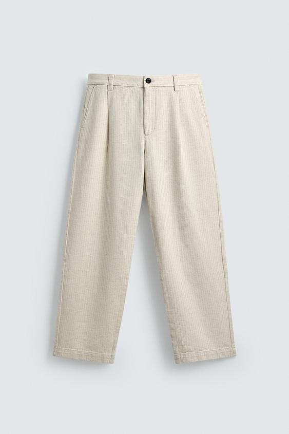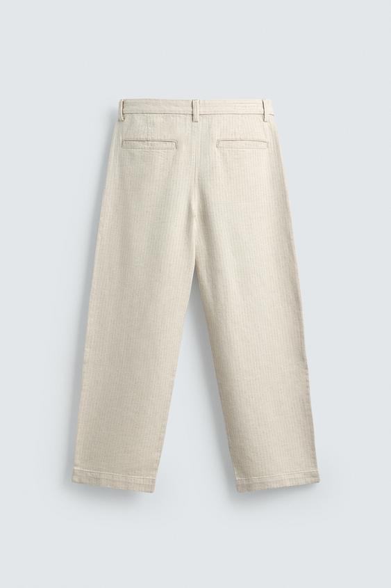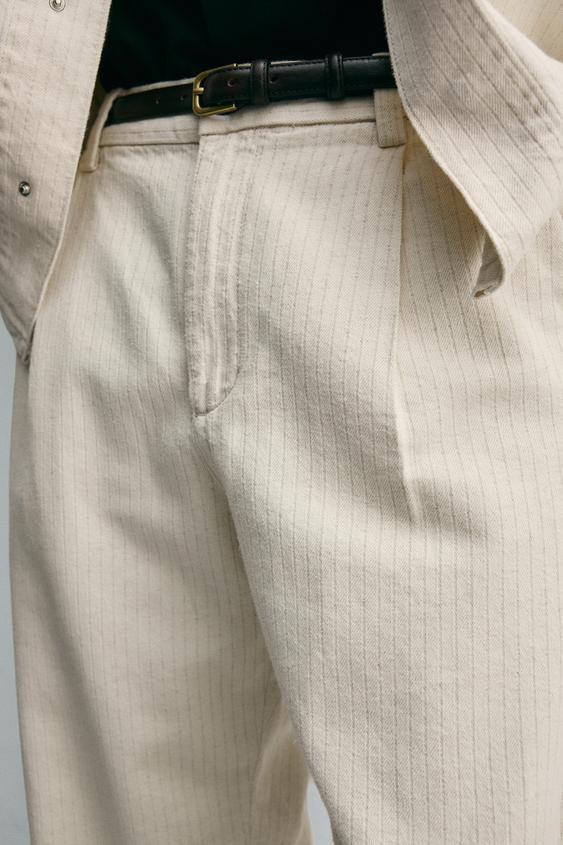 ZARA БРЮКИ ЧИНОС RELAXED FIT В ТОНКУЮ ПОЛОСКУ, ЭКРЮ