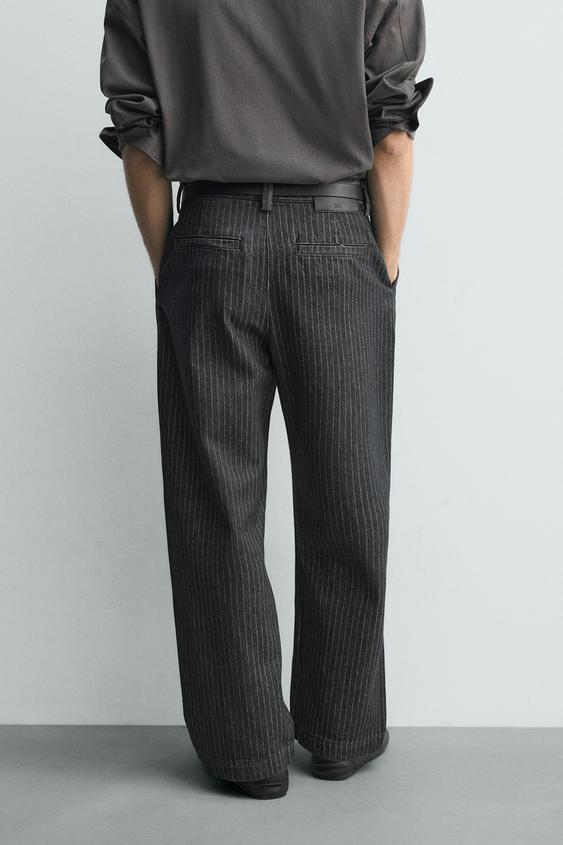 ZARA БРЮКИ ЧИНОС RELAXED FIT В ТОНКУЮ ПОЛОСКУ, СЕРЫЙ
