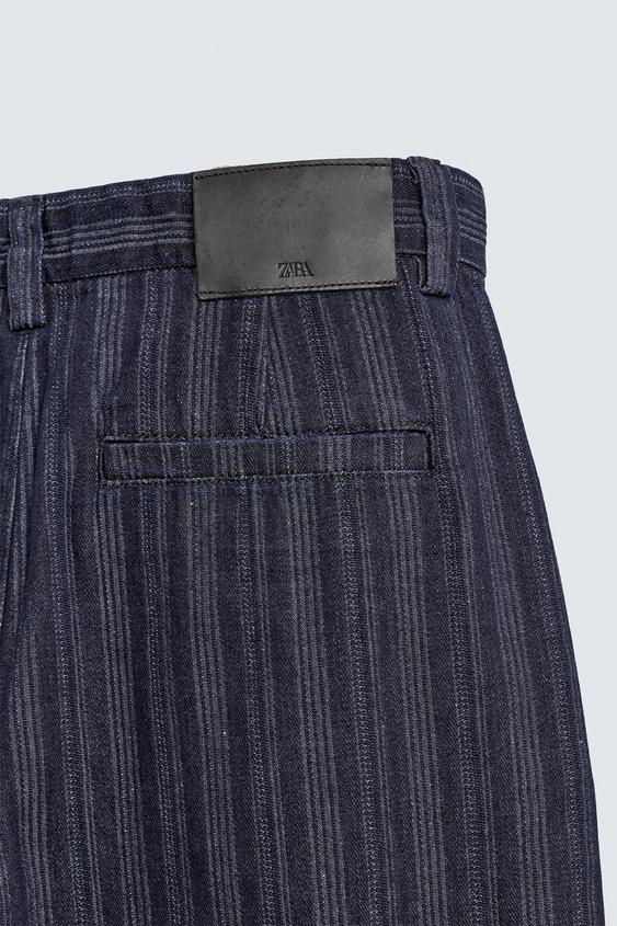 ZARA БРЮКИ ЧИНОС RELAXED FIT В ТОНКУЮ ПОЛОСКУ, СИНИЙ