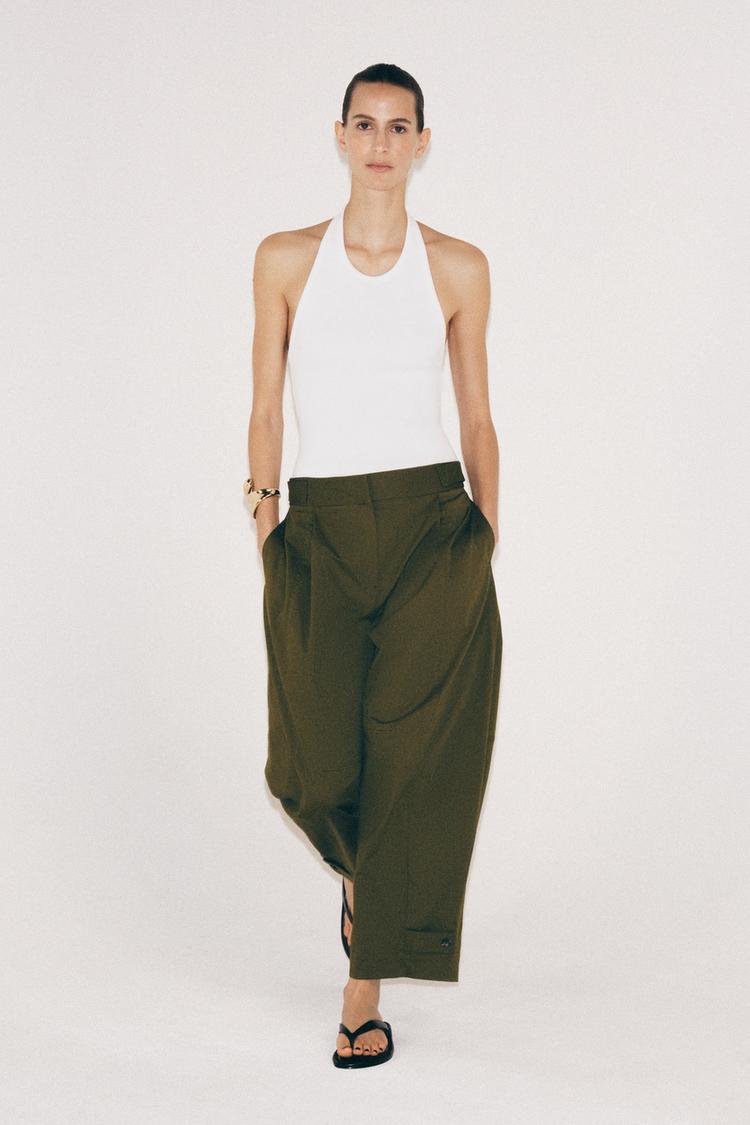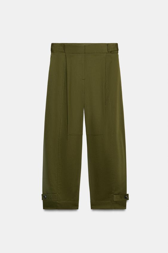ZARA БРЮКИ ЧИНОС С ХЛЯСТИКАМИ — ZW COLLECTION, ОЛИВКОВЫЙ