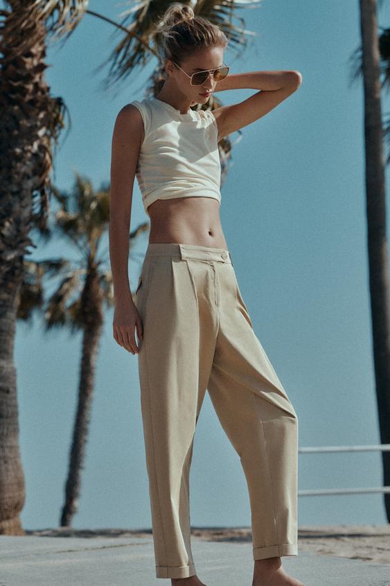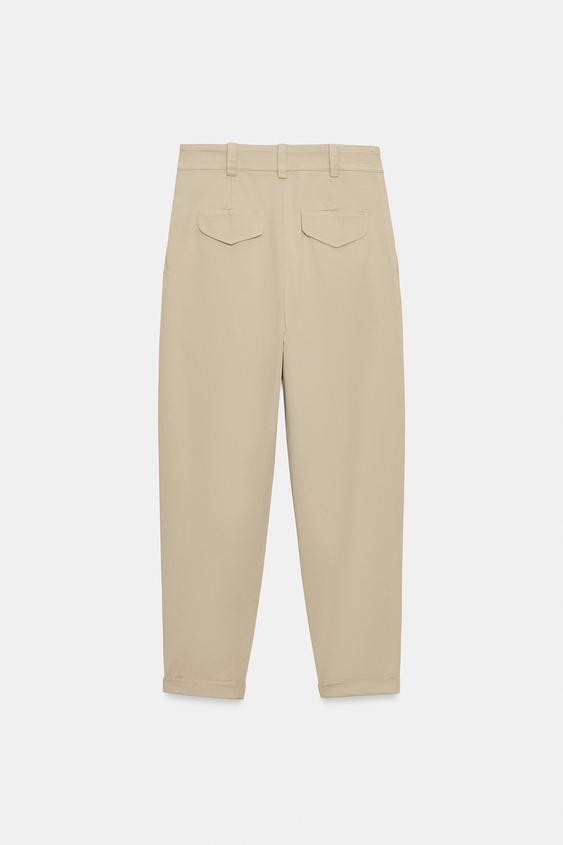 ZARA БРЮКИ ЧИНОС С ОТВОРОТАМИ, СВЕТЛЫЙ ЖЕЛТО-КОРИЧНЕВЫЙ