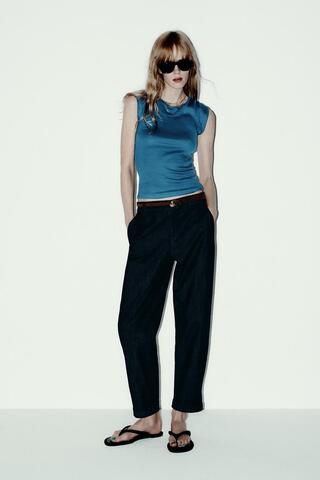 ZARA БРЮКИ ЧИНОС С ПЛЕТЕНЫМ РЕМНЕМ, ИНДИГО