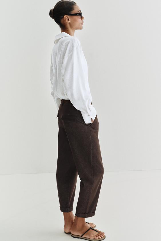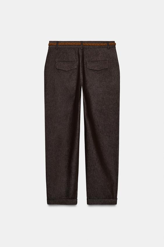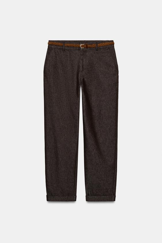 ZARA БРЮКИ ЧИНОС С ПЛЕТЕНЫМ РЕМНЕМ, КОРИЧНЕВЫЙ