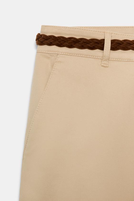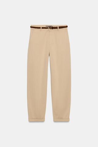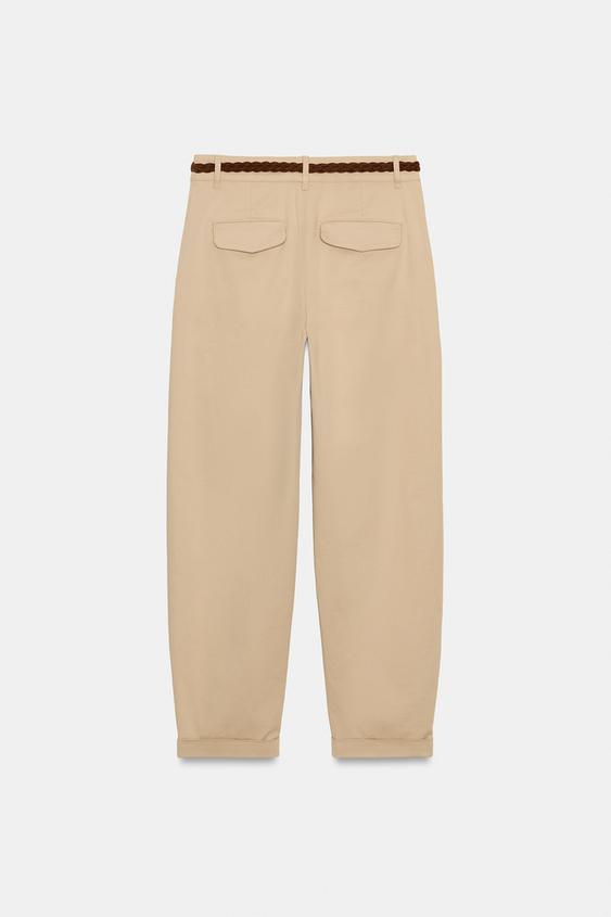 ZARA БРЮКИ ЧИНОС С ПЛЕТЕНЫМ РЕМНЕМ, СВЕТЛЫЙ ЖЕЛТО-КОРИЧНЕВЫЙ