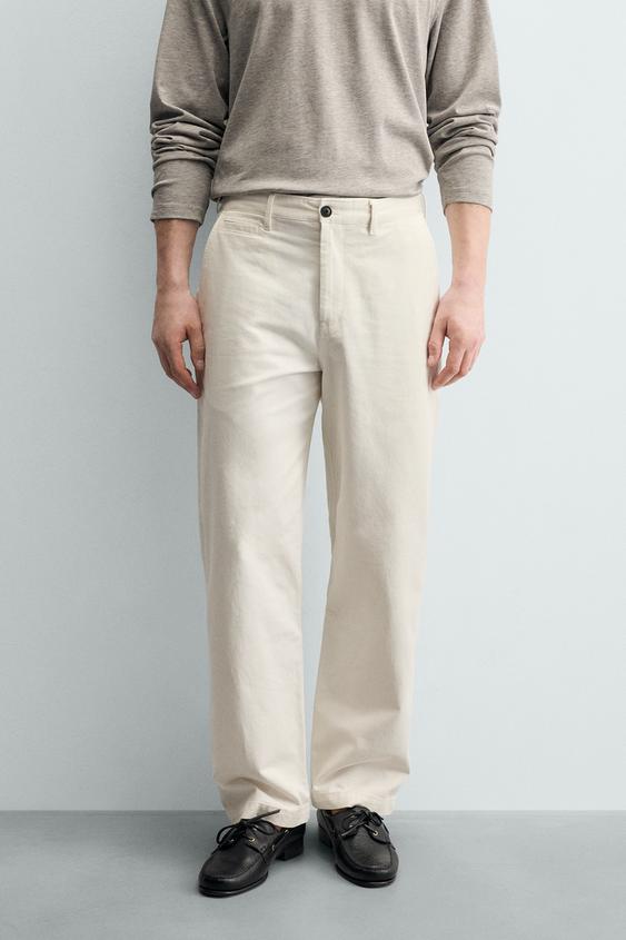 ZARA БРЮКИ ЧИНОС STRAIGHT FIT, БЕЛЫЙ