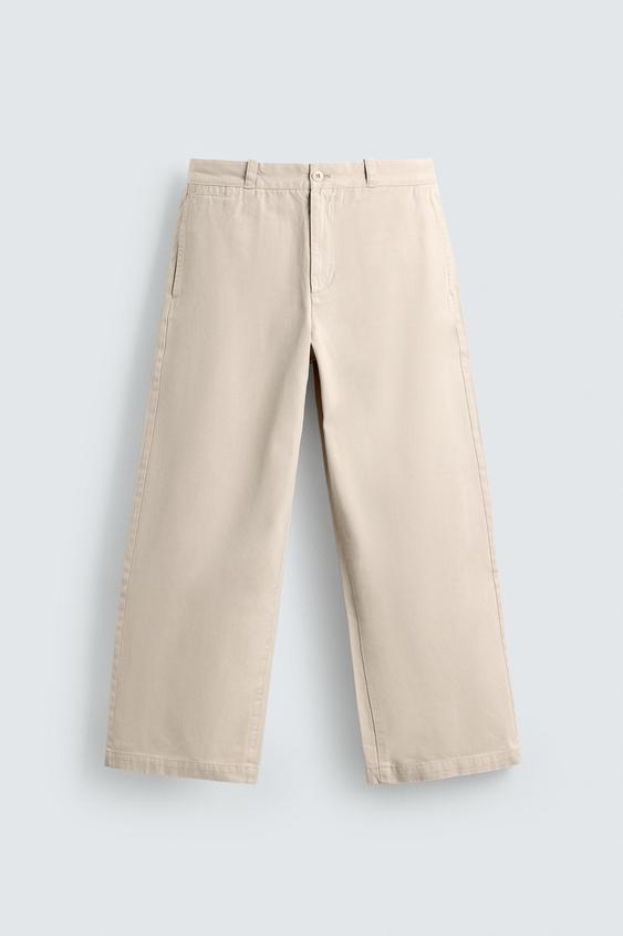 ZARA БРЮКИ ЧИНОСЫ ШИРОКОГО КРОЯ, ЖЕЛТОВАТО-БЕЛЫЙ