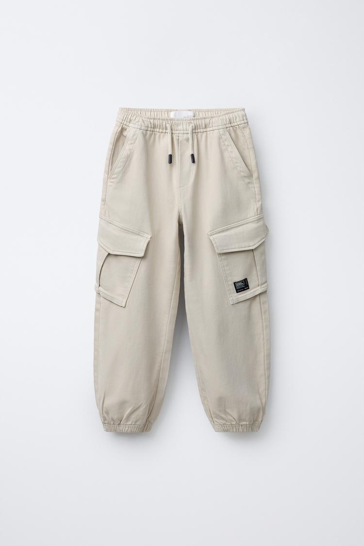 ZARA БРЮКИ-ДЖОГГЕРЫ КАРГО С ЭТИКЕТКОЙ, БЕЖЕВЫЙ