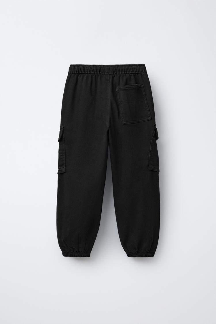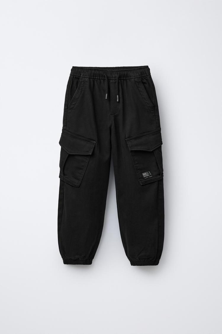 ZARA БРЮКИ-ДЖОГГЕРЫ КАРГО С ЭТИКЕТКОЙ, ЧЕРНЫЙ