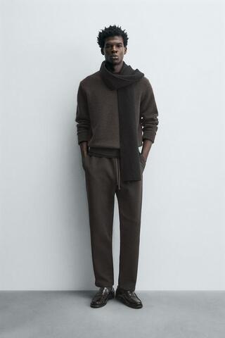 ZARA БРЮКИ-ДЖОГГЕРЫ КОМФОРТНОЙ ПОСАДКИ, ТЕМНО-КОРИЧНЕВЫЙ